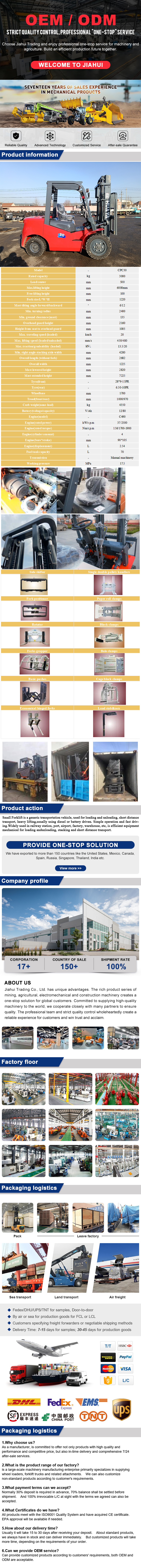 3T forklift with 1 year warranty